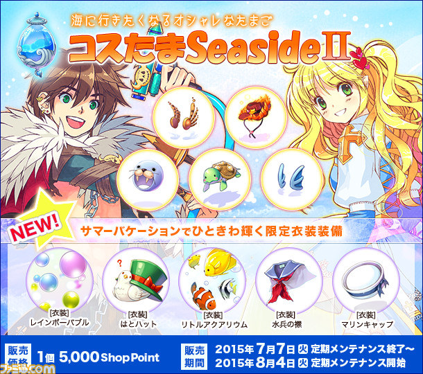 キャラクターのドレスアップを楽しめる衣装装備がつまったコスたまに、海に行きたくなるたまご「コスたまSeasideII」が登場です!