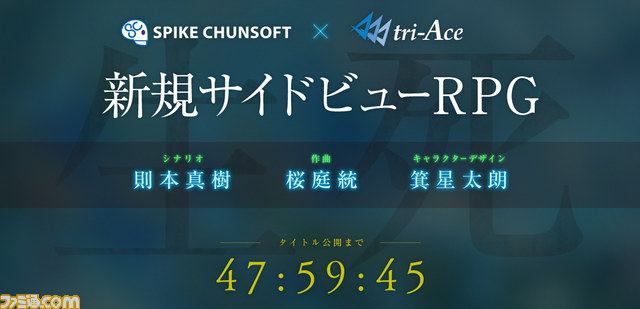 スパイク・チュンソフトがトライエースをタッグを組んで制作している“新作サイドビューRPG”。2015年7月24日にカウントダウンを行うティザーサイトが公開されたが、このサイトが更新され、新たなキーワードが公開された。