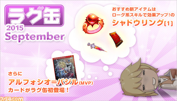 ガンホー・オンライン・エンターテイメントは、サービス中のPC用オンラインRPG『ラグナロクオンライン』において、“ラグ缶2015 September”を2015年8月20日(木)より発売開始する。