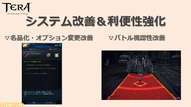 新クラス発表に続いては、新規ダンジョン、新規チュートリアルエリア、システムの改善点などがまとめて紹介された。以下の画面を参照してほしい。
