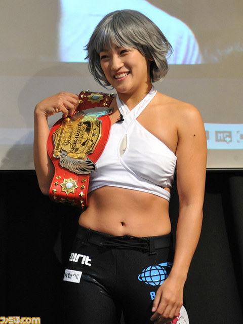 最初の発表は、待望の新クラスについて。11番目のクラスとしてスクリーンに“Fighter”が映し出された。特徴を聞かれた中川氏は「説明するより、実際に見てもらったほうがわかりやすいと思います。今日は“Fighter”に、この場に来てもらっています!」とコメント。その言葉とともに登場したのが、スペシャルゲストの、シュートボクシングのRENA(れーな)選手だ。