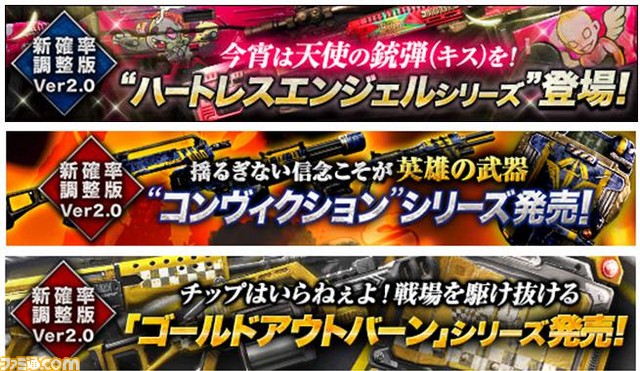 9月8日(火)メンテナンス後より、T2武器の獲得率と内容を一新したVer2.0の武器Gボックス3種類の販売を開始いたしました。レジェンド武器のほかハンドガンの獲得率アップや、ハイエンド武器の撤廃など大幅に変更しておりますので、ご購入をご検討ください。