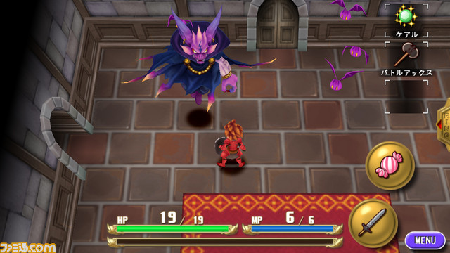 小山田 はい、タッチ操作に対応しています。『ケイオスリングス』が発明した、指を置いたところがパッドになって360自由移動できる“どこでもバーチャルパッド”を、よりアクションゲームが遊びやすいようにカスタマイズしました。それから、フィーチャーフォン版のアイテム画面は文字だけだったのですが、今回はリングコマンド風にしました。