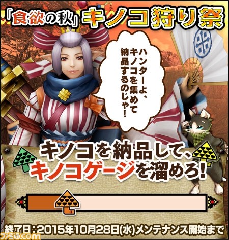 カプコンがサービス中のオンラインハンティングアクション『モンスターハンター フロンティアG』において、2015年10月21日より、ハロウィンイベントのほか、“食欲の秋”、“スポーツの秋”をモチーフにしたイベント&キャンペーンが開催されている。