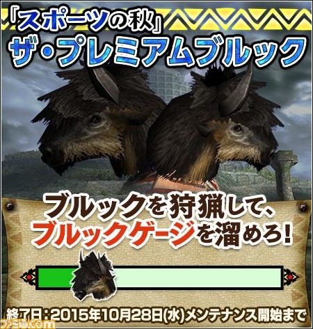 紅葉狩りならぬ、ブルック狩り!? 【スポーツの秋】は、「ザ・プレミアムブルック」で決まり! 狩猟されたブルックの数に応じて、プレミアムコースが1時間無料開放される「プレミアムな夜」をプレゼント!最大で1週間、プレミアムコース60分が毎日無料に!! ブルックを狩りまくって、オトクな秋の夜長を目指そう!