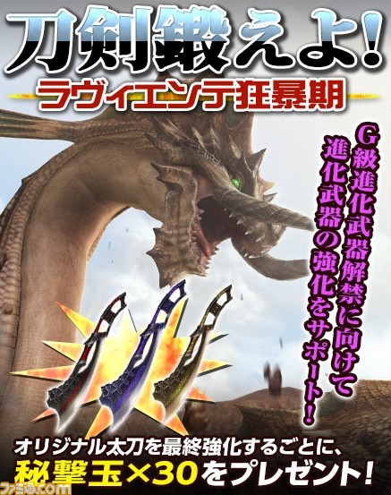 G級進化武器解禁に備え、進化武器を強化せよ! 「刀剣鍛えよ!~ラヴィエンテ狂暴期~」開催
