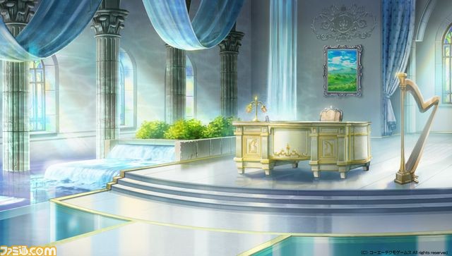 水の守護聖リュミエールの執務室は、滝となって落ちる水がそのまま装飾となった涼やかな印象の部屋です。