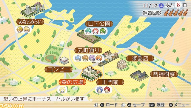 また、2015 年7 月27 日(月)から8 月27 日(木)まで開催した「キャラクター衣装デザインコンテスト」にて決定した、キャラクター12 人の“秋冬の私服デザイン”を発表いたしました。ユーザーの皆様からお送りいただいた、各キャラクターの魅力を引き立てるデザインは必見です。さらに、本作では「ゲーム中のフィールド画面」のデザインを一新いたしました。イラストレーター「船鬼一夫(ふなきかずお)」氏のデザインをベースに作られたキュートなミニキャラと、ポップに表現された横浜の風景をご覧ください。