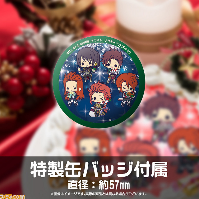 『テイルズ オブ』シリーズに登場するキャラクター達(ゼロス、ルーク、アッシュ、ユーリ、アスベル)をラバーストラップでおなじみ、人気イラストレーター サクライ氏による可愛らしいデフォルメイラストにて再現したデコレーションケーキをご用意しました。デコレーション部には人気キャラクターが大きく鮮やかに描かれており、もちろん全てお召し上がりいただけます。上質な生クリームや新鮮な卵、国産小麦を100%使用しており、味のクオリティにもこだわった商品です。サクライ氏イラストによる特製缶バッジ(57mm)も付属します。
