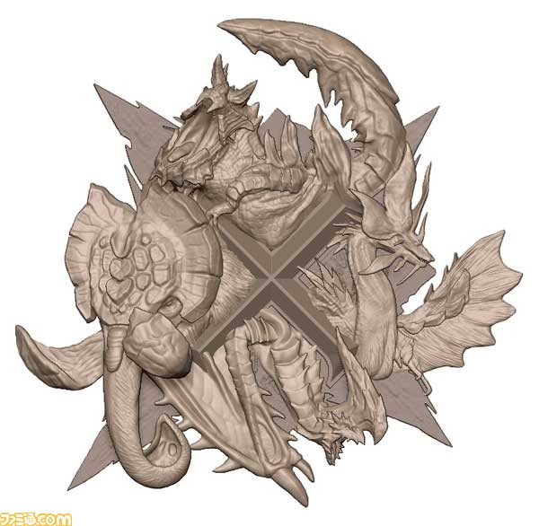 4大メインモンスターをモノトーンでデザインしたCOOLなTシャツ!センターの「X」が金色に輝く!