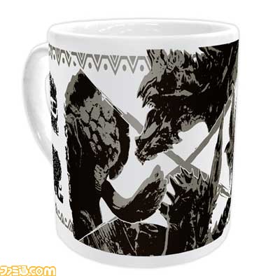 4大メインモンスターのモノトーンイラストとアイコンをデザインしたマグカップ! 狩りの合間の一休みにドリンクをどうぞ!