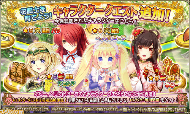冬季イベント「目指せ! 一流の花騎士」の開催に合わせて「アカシア」「ポピー」「ヘリオトロープ」のキャラクエストがボイス付きで追加!