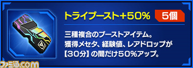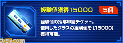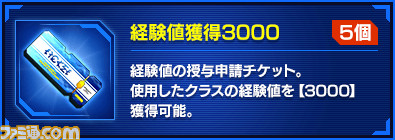 (1)、「経験値獲得3000」(使用したクラスの経験値を3000 獲得)×5 個