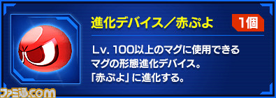 (2)、「進化デバイス/赤ぷよ」(マグの形態進化デバイス)×1 個