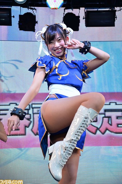 ミス春麗決定戦には、芸能界屈指の格闘ゲーマー佐藤かよ、尻職人でおなじみの倉持由香さん、小さいころに『ストII』で弟にボコボコにされたことがあるという日野麻衣の華やかなタレント3名に加え、瀧上も春麗のコスプレをして参戦。この戦いは、ゲーム対決、ポーズ対決、キック対決を行い、これらのパフォーマンスを杉山氏、綾野氏、そしてエグゼクティブプロデューサーの小野義徳氏が審査し、誰がもっとも春麗かを決めるというもの。