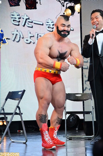 ザンギエフがゲーム中のキックを完全再現する場面も。