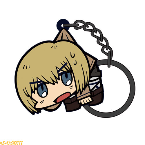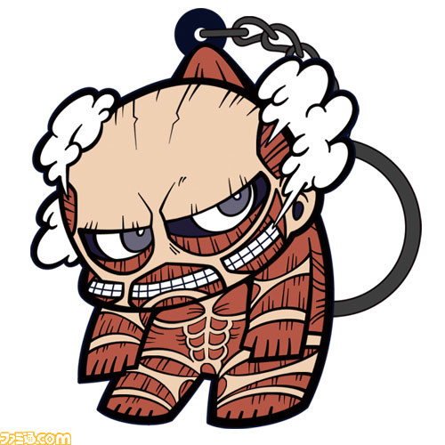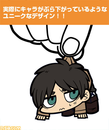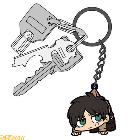 コスパが展開する、カバンなどにつけることで、キャラクターがぶらさがっているように見えるアイテム“つままれ”シリーズとして、『進撃の巨人』のキャラクターのキーホルダーとストラップが“つままれ姿Ver.2.0”となって2016年5月下旬に再登場。価格は600円[税抜]。