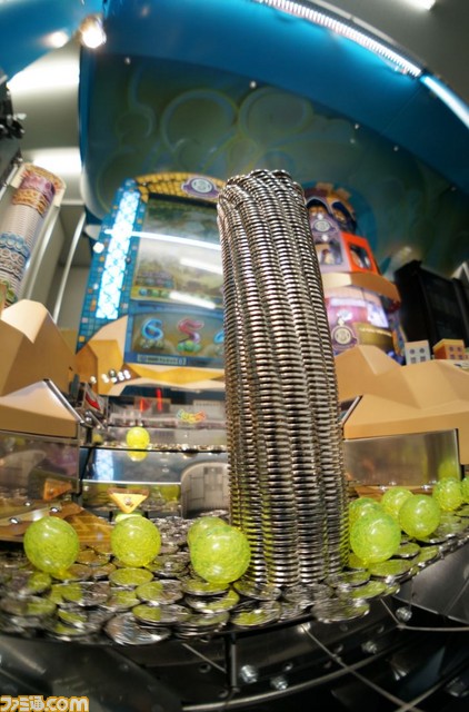 最新技術のメダルタワー生成メカで建てられる最大1000 枚、高さ30cm にも達するメダルタワーは、世界でも初となります。メダルそのものを使って遊ぶプッシャーゲーム機の原点である「たくさんのメダルを落とす」ことを追及し、そびえ立つメダルタワーは、誰もがフィールドから落としてみたくなるでしょう!