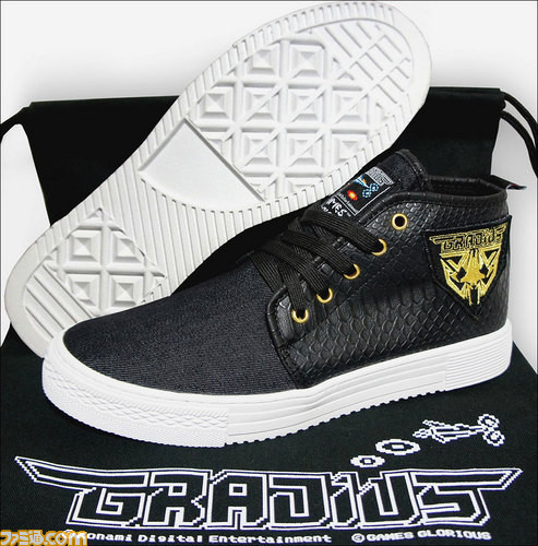 『グラディウス』生誕30年記念商品の第2弾としてスニーカー“Game Master 80”が数量限定でGAMES GLORIOUSより2016年3月19日に発売決定! 現在、オンラインショップ・ebten[エビテン]では購入特典としてグラディウスポストカード付きにて、予約受付中(→こちら)。価格は13,889円[税抜](15,000円[税込])。