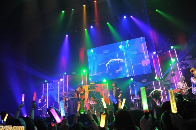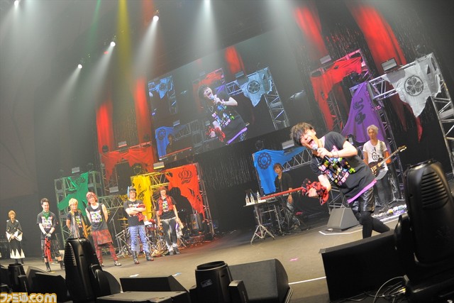 出演者がなぜかイカつい黒マスクの“八王子ディストーション”スタイルで登場したMCの後は、ソロコーナーへ。小野さん(沖田)による「共鳴進歌」に始まり、鈴木(高杉)さんによる「REACTION」、森川さん(土方)による「モット!!!」、森久保さん(桂)による「重力のない世界」、斎賀さん(慶喜)による「宙ノ翼」と出演者がつぎつぎに歌い上げ、トリを飾るのはもちろん谷山さん(龍馬)の「LAST SCREAM」。楽曲はそれぞれ、キャラクターの個性や物語を描きつつも、最高のロック魂を見せつけるもの。曲が変わるたびに観客の振るペンライトもキャラクターをイメージした色に変わり、これ以上ない一体感を演出していた。