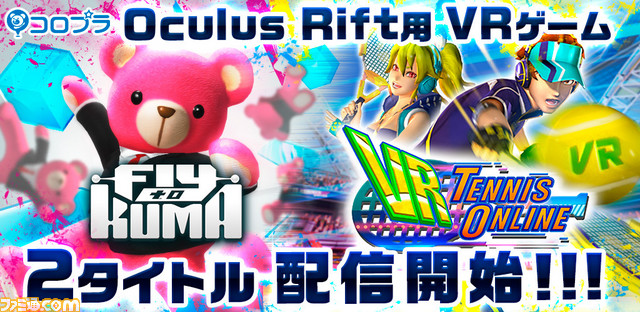 コロプラは、Oculus Rift向け新作VRゲーム『Fly to KUMA』と『VR Tennis Online』を、本日2016年3月29日よりOculus Storeにて配信開始した。