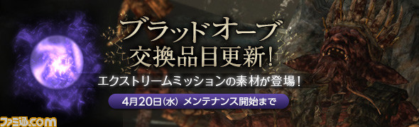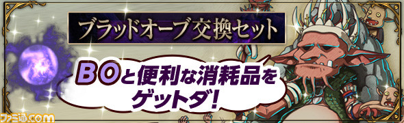 4月20日(水)まで、ブラッドオーブや冒険で役立つ消耗品が手に入るトレジャーズロット「ブラッドオーブ交換セット」を販売いたします。
