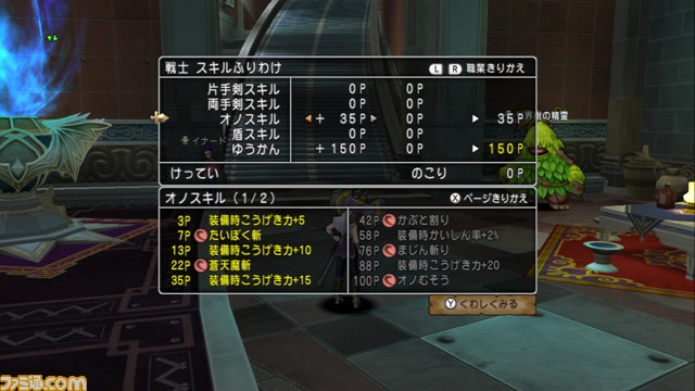 武器をオノ、防具を戦士が装備できるものに変換し、スキルを“ゆうかん”に150、残りをオノに振れば準備完了。