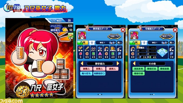 考えるより感じるタイプのいわゆる"脳筋"キャラで、俊足の外野手。赤特殊能力は4月1週に"遊ぶ"コマンドを使用すると確実に発生するDVDイベントで狙える。緑特殊能力は以下のおすすめイベキャラを参考に取得しよう。