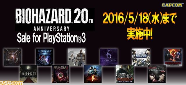 1996年に第1作が発売されたカプコンの『バイオハザード』シリーズ。同シリーズが20周年を迎えたことを記念して、PlayStation Storeにてプレイステーション3版同シリーズの値下げが、本日2016年4月28日より実施される。