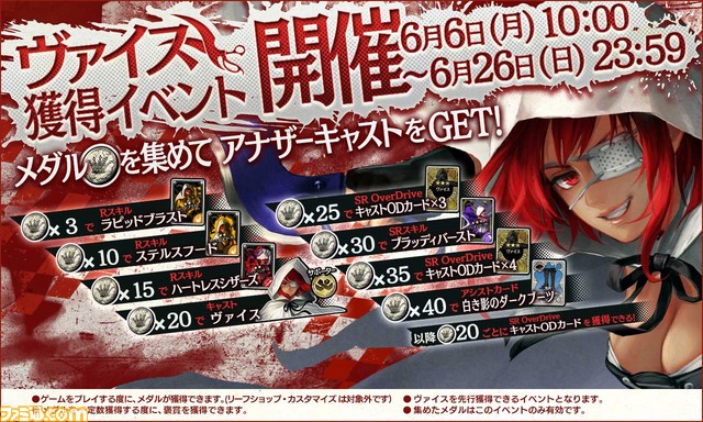 獲得したメダル数に応じてアナザーキャスト「ヴァイス」やスキルカード等の報酬を獲得できます。