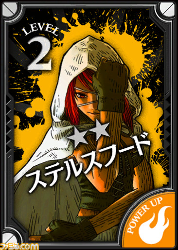 効果:フリックをすると即時発動する。自身の姿が見えにくくなり、兵士からの攻撃対象にならなくなる。さらに、自身の攻撃力が下がるがスキル使用時に消費するMPが減少する。この状態は、自身がダメージを受けるまで一定時間継続する。