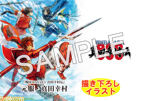 対象のショップで本作を購入すると、先着で入手できる特典物について、追加となった対象のショップと、特典物に使用するイラストを公開! 一部のショップでは描き下ろしイラストを使用したアイテムになっているぞ! 実用的なものから、鑑賞用のものまで、バリエーションに富んでいる。もちろん、どのショップでも数量限定特典「真田幸村特別衣装【白十字 Ver.】」と小説「元服・真田幸村」も入手可能だ(数に限りがございます)。これまでに公開された特典物も含め、気になったアイテムがあれば、確実にGETするために予約を急ごう!