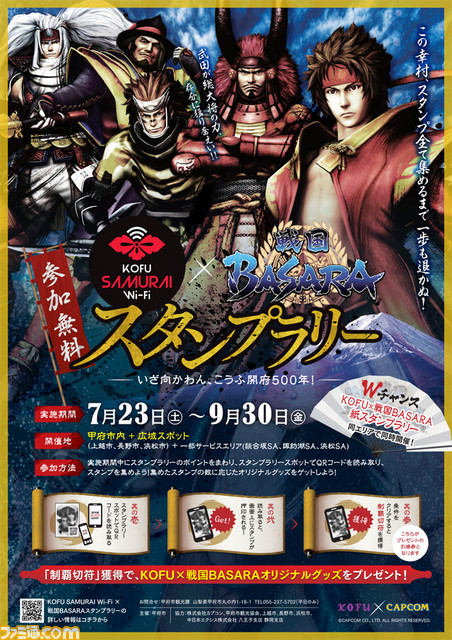 2016年7月23日から9月30日まで、山梨県甲府市にて“KOFU SAMURAI Wi-Fi×戦国BASARAスタンプラリー -いざ向かわん、こうふ開府500年!-”の開催が決定した。