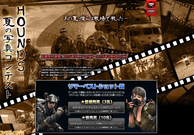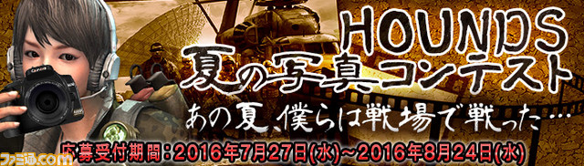 2016年7月27日、DMM GAMESはPC用オンラインゲーム『HOUNDS』において、夏休みログインスタンプラリーイベントを開始した。2016年8月31日までの開催期間中、毎日ログインすることで便利なアイテムを入手可能。また、ゲーム内で撮影したスクリーンショットで応募できる写真コンテストの作品募集もスタートした。