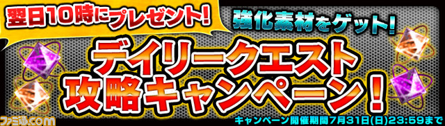 ▼翌日に強化素材が貰える!デイリークエスト攻略キャンペーン