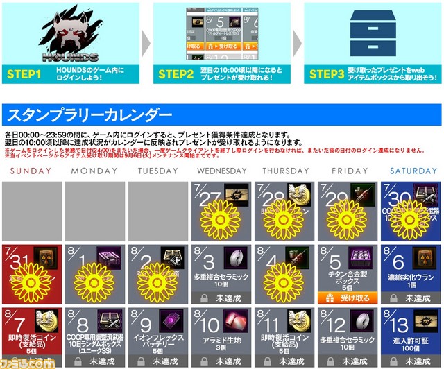 7月27日(水)より、HOUNDSの夏休みログインスタンプラリーイベントを開始しました。
