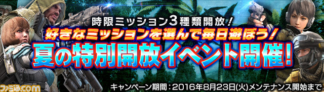 時間限定で参加可能な時限ミッションが毎日3種類開放される時限ミッション夏の特別開放イベントを開催いたします。