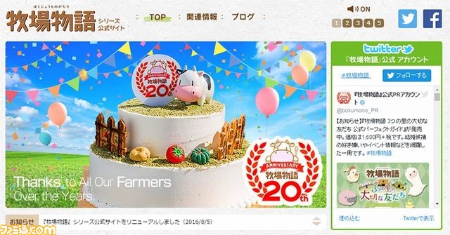 『牧場物語』シリーズ 20周年記念公式サイトが本日オープン