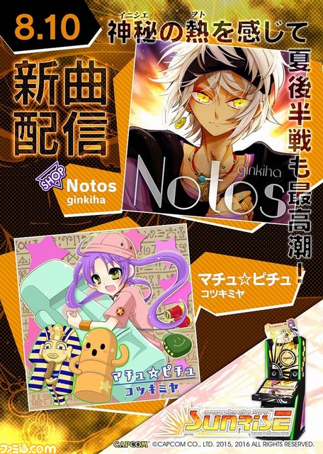 本日より追加・収録となるのは、夏もいよいよ後半戦に突入し、まだまだ熱さを感じさせる「Notos」/ginkihaと、 「マチュ☆ピチュ」/コツキミヤの2つの楽曲が追加となります。