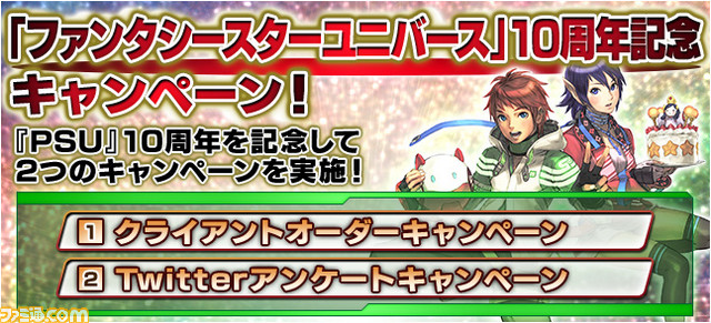株式会社セガゲームス コンシューマ・オンライン カンパニー(以下、セガゲームス)は、好評サービス中のオンラインRPG『ファンタシースターオンライン2(以下、PSO2)』(Windows PC版/PlayStation Vita版/PlayStation4版)におきまして、同じくファンタシースターシリーズの『ファンタシースターユニバース(以下、PSU)』がサービス開始から10周年を迎える事を記念したキャンペーンを本日8月31日より実施いたします。