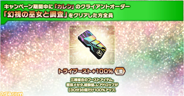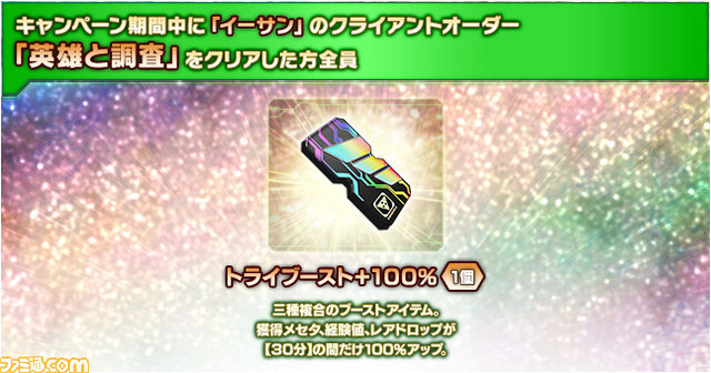 キャンペーン内容:キャンペーン期間中に「イーサン」、「カレン」のクライアントオーダーをクリアした方全員にアイテムをプレゼント!
