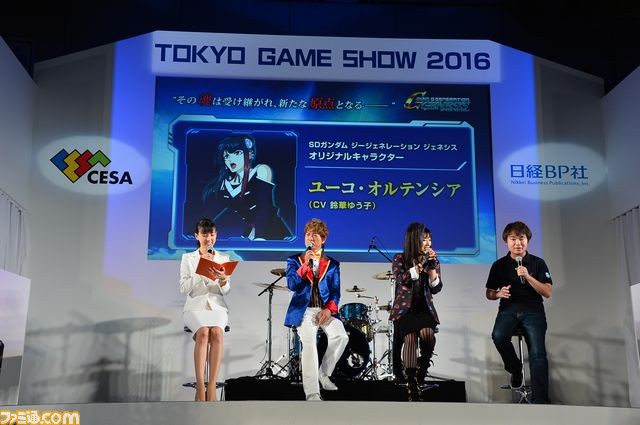 続いては、PS4、PS Vita用ソフト『SDガンダム ジージェネレーション ジェネシス』のコーナーへ。同作のタイアップアーティスト・鈴華ゆう子が、そのテーマ曲であるオープニング曲とエンディング曲を披露してくれた。
