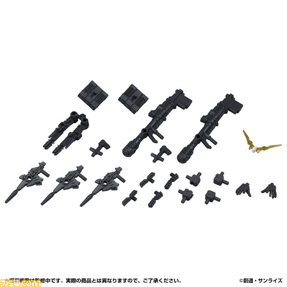 “武装”をテーマに、2016年12月より全国のガシャポン自販機にて発売するガンダムの新ホビーです。機体の各所に配されている3mmの共通の穴に、あらゆるパーツを接続できる機構になっており、自分だけのモビルスーツを作成することが可能です。
