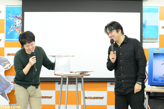 その後は、Esのプロフィールを当てるクイズや森プロデューサーと対戦できるコーナー、プレゼント抽選会と、来場したファンと触れ合いながらイベントが進められた。そして最後は、「これからも『ブレイブルー』をよろしくお願いします。『エクステンド』は絶対出しません。その代わりにこれでもかというほど内容満載なので、ぜひ『ブレイブルー セントラルフィクション』を遊んでいただければ」と森氏がコメントしてトークショーを締めくくった。