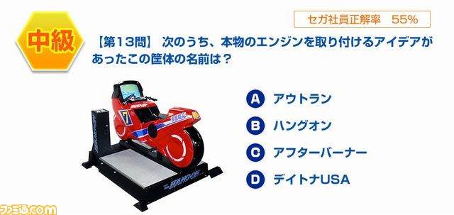 クイズは全部で20問。セガ社員正解率により「初級」「中級」「上級」に分けて出題!