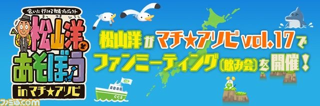 サイバーコネクトツー設立20周年記念!皆様に感謝を直接お届けするために、松山洋みずから全国を巡ってファンミーティング(飲み会)を敢行!この前代未聞の企画『松山洋とあそぼう』が今回の『マチ★アソビ Vol.17』にて特別開催!思わぬ飛び込みゲストの可能性も!?