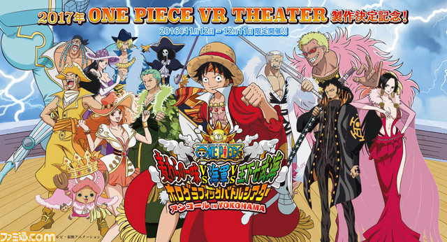 2017年に完全オリジナル作品『ONE PIECE VR THEATER』の製作が決定。これを記念して、2016年11月12日より『麦わらの一味vs 海軍vs 王下七武海 ホログラフィックバトルシアター アンコールin YOKOHAMA』を実施。さらに、期間限定でコラボフードやドリンクが楽しめる“麦わらバトルカフェ”が登場する。