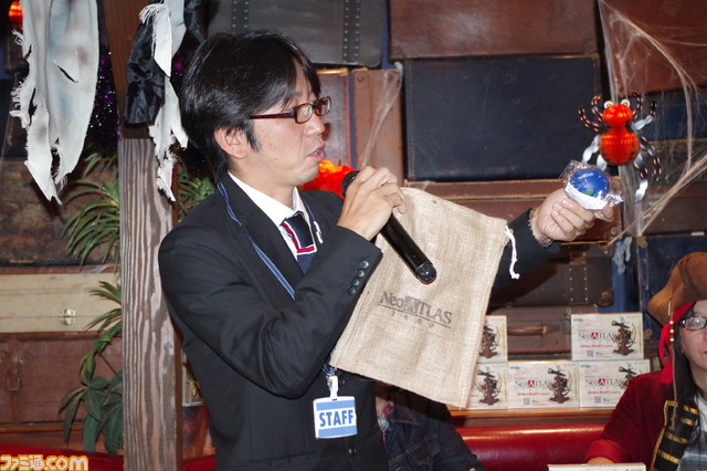 海賊に扮した高橋氏は、「『ATLAS』シリーズにはハマりにハマっていて、今回はソフトを盗んじゃいました(笑)。今日は皆さん、思う存分遊んでいただければと思います」とコメント。このあと清道氏より、参加者ひとりひとりにソフトが手渡しされ、今度こそ本当に体験会がスタート。軽食とドリンクがサービスされ、参加者は思い思いに、約2時間のフリープレイを楽しんだ。