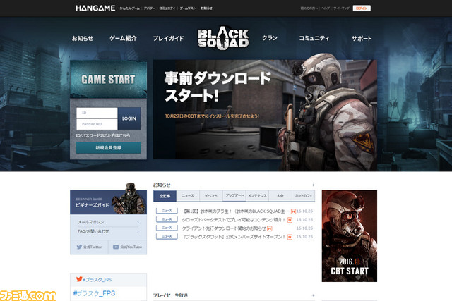 2016年10月25日、NHN ハンゲームはPC用新作オンラインFPS『BLACK SQUAD(ブラック・スクワッド)』の公式メンバーズサイトをオープンした。メンバーズサイトではプレイガイドが公開されているほか、クローズドβテスト向けのクライアントをダウンロード可能だ。