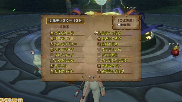 まずは、甘味のモト、辛味のモトを10個ずつ集めてくるようお願いされます。甘党or辛党の衣装を着ている状態で植物系のモンスターと戦うと“あまからぼう”というモンスターもいっしょに出現。そいつが“モト”を落とすようですね。
